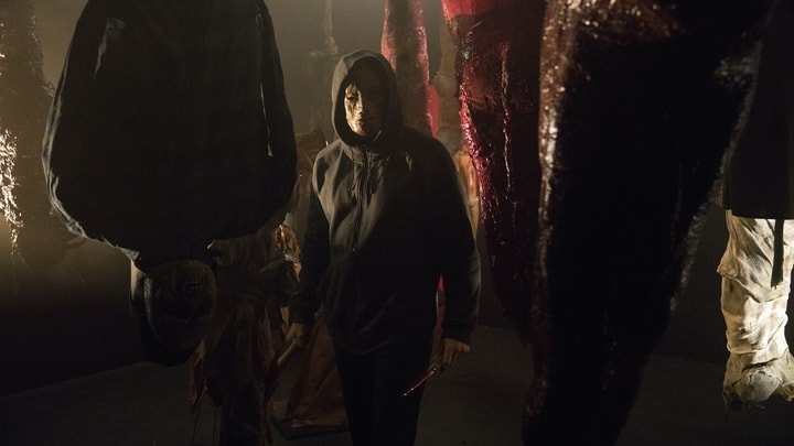 On Halloween night at a horror theme park, a costumed killer begins slaying innocent patrons who believe that it's all part of the festivities.