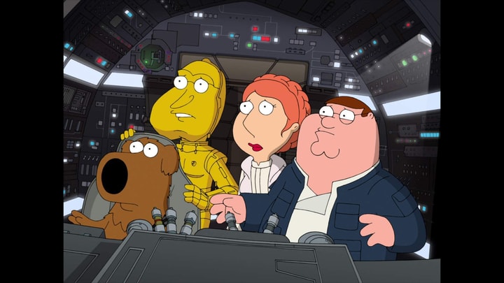 Peter Griffin as Han Solo / Brian Griffin as Chewbacca / Stewie Griffin as Darth Vader / Glenn Quagmire as C-3PO / Dr. Elmer Hartman as General Rieekan / Carter Pewterschmidt as Emperor Palpatine (voice)