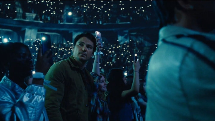 A father and teen daughter attend a pop concert, where they realize they're at the center of a dark and sinister event.
